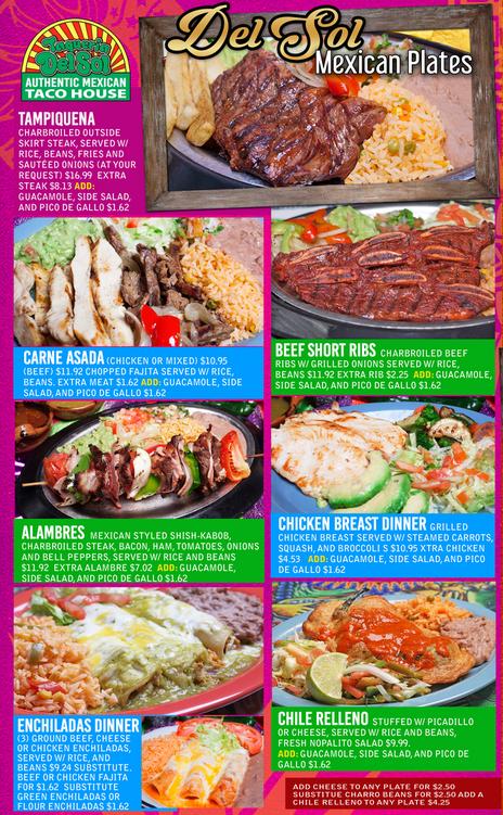 Menu At Taqueria Y Restaurant El Sol De Mexico Baytown 501 N Alexander Dr